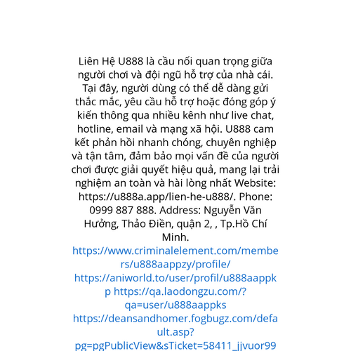 Website: https://u888a.app/lien-he-u888/. Liên Hệ U888 là cầu nối quan trọng giữa người chơi và đội ngũ hỗ trợ của nhà cái. Tại đây, người dùng có thể dễ dàng gửi thắc mắc, yêu cầu hỗ trợ hoặc đóng góp ý kiến thông qua nhiều kênh như live chat, hotli