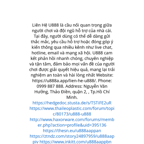 Website: https://u888a.app/lien-he-u888/. Liên Hệ U888 là cầu nối quan trọng giữa người chơi và đội ngũ hỗ trợ của nhà cái. Tại đây, người dùng có thể dễ dàng gửi thắc mắc, yêu cầu hỗ trợ hoặc đóng góp ý kiến thông qua nhiều kênh như live chat, hotli