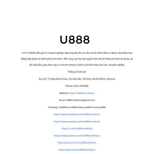 U888 là điểm đến giải trí chuyên nghiệp, đáp ứng đầy đủ các tiêu chuẩn kiểm định và được cấp phép hoạt động hợp pháp từ chính phủ Costa Rica. Nền tảng này thu hút người chơi với hệ thống trò chơi đa dạng, ưu đãi hấp dẫn https://u888com.direct/