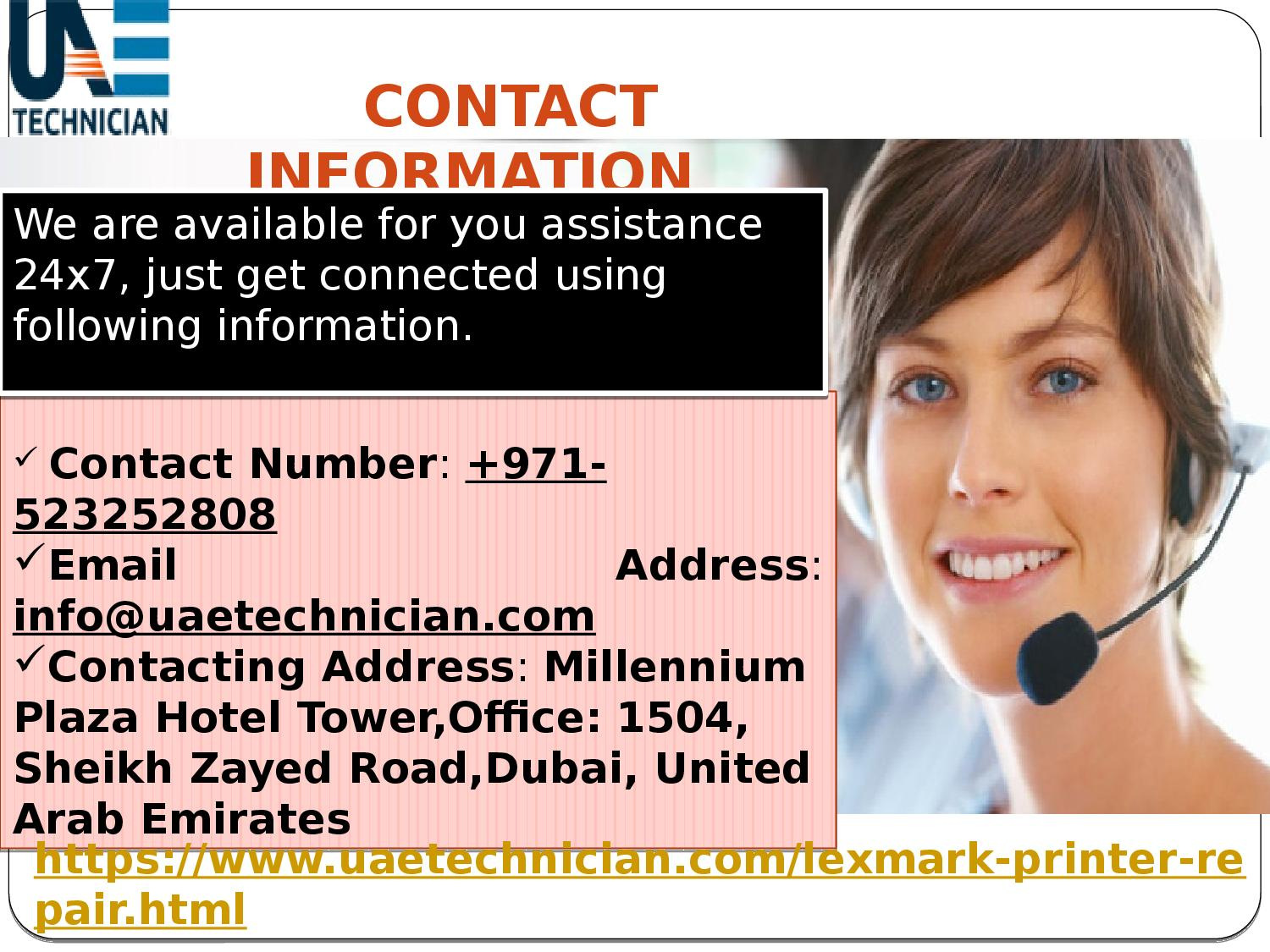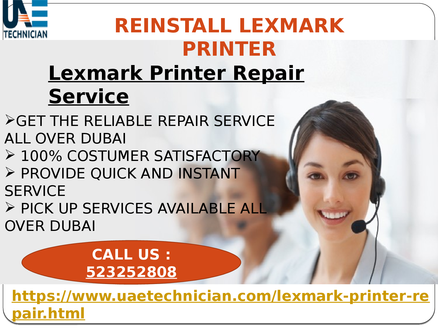 When you look for the printer support service provider for your Lexmark printer help make sure they are backed by professionals who have extensive knowledge and experience in repairing such devices. There many service providers available in the market but who are primarily dedicated to serving Lexmark customers with personalizing solution to deliver a reliable customer Service.When you purchase Lexmark printer, you also get online customer and support service free till the warranty period to repair and solve any issue. However, owing to any reason if you are not able to access customer support service, you can try for other third-party service providers. And, to avoid such unexpected situation always get in touch with such professionals. Contact us for the technical help at our Customer Support Number +971-523252808.Visit our official website: https://www.uaetechnician.com/lexmark-printer-repair.html