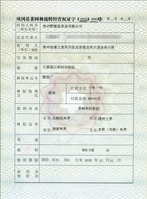 “一亩一证”是野鹿盖茶业在农村土地三权分置改革背景下,针对茶园流转经营权推出的一项创新举措。简单来说,就是将一亩有机茶园作为单元,为认养者签发茶树林流转经营权证 (以下简称“权证”)。 获得权证,意味着: