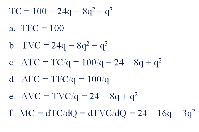 Marginal Cost using Calculus: MC = dTC/dq = dVC/dq