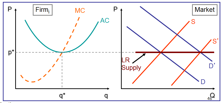 In a constant cost industry, the long run supply curve will be flat as "clones" enter to compete away profits.