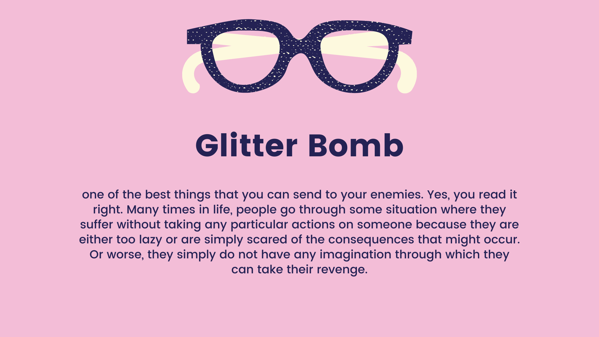 Glitter Bomb is one of the best things that you can send to your enemies. Yes, you read it right. Many times in life, people go through some situation where they suffer without taking any particular actions on someone because they are either too lazy or are simply scared of the consequences that might occur. Or worse, they simply do not have any imagination through which they can take their revenge. Well, if you are also among those people and do not have enough ideas with yourself, then we’ve done the hard work for you. You are no more in need to plan anything yourself about the revenge you want from someone as we have done that thing for you.