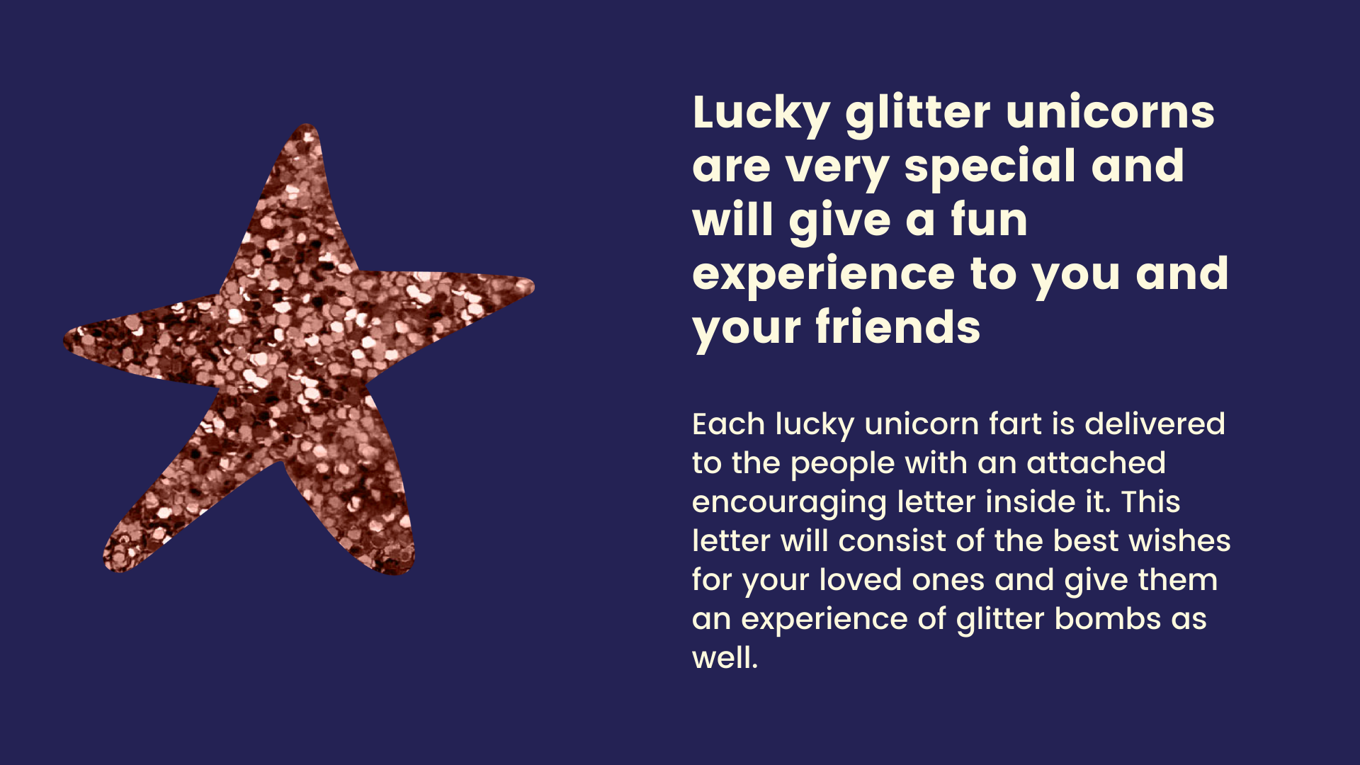 Unicorn Glitter Bomb proudly glittified fashion shows, celebrities and offices. while helping everyone who wanted to get anonymous revenge or show some love via Glitter!