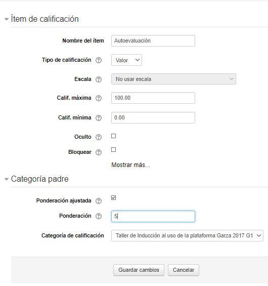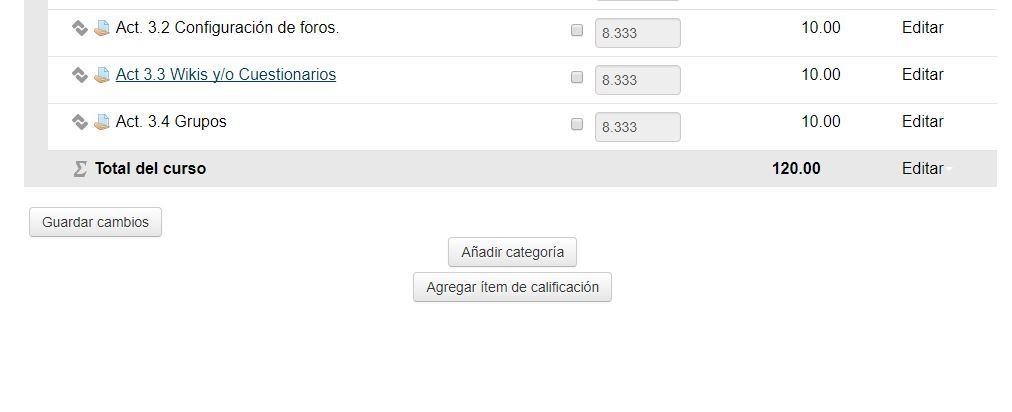 Habilita los cuadros de texto para modificar la ponderación de cada actividad.