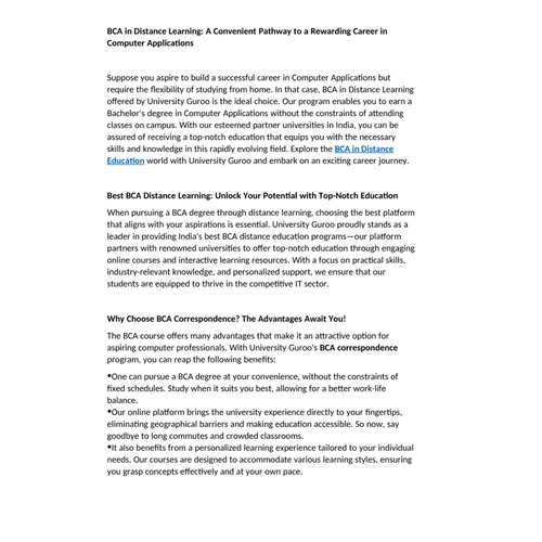 BCA -BCA in Distance Learning: A Convenient Pathway to a Rewarding Career in Computer Applications
