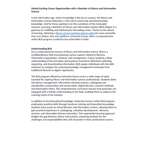 BLIS-Unlock Exciting Career Opportunities with a Bachelor of Library and Information Scienc