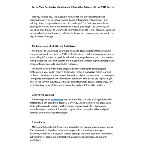 Online MLIS -Revive Your Passion for Libraries and Information Science with an MLIS Degree