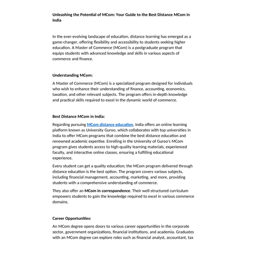 Unleashing the Potential of MCom: Your Guide to the Best Distance MCom in India