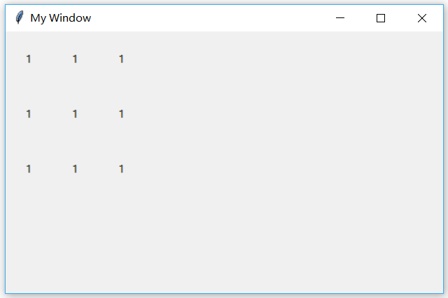 tk.Label(window, text=1).grid(row=i, column=j, padx=10, pady=10, ipadx=10, ipady=10)