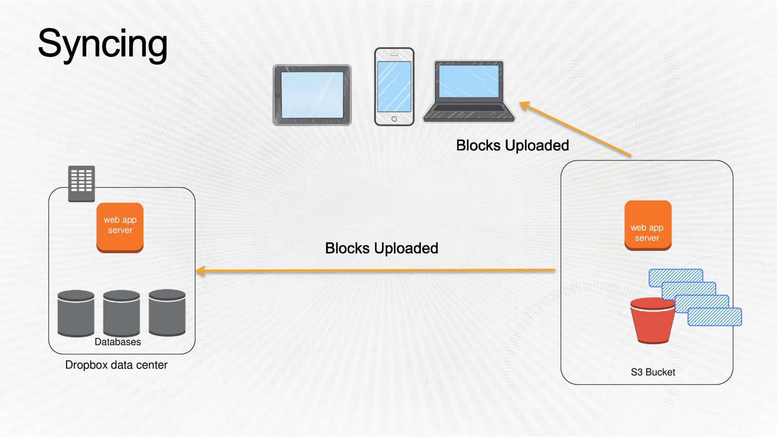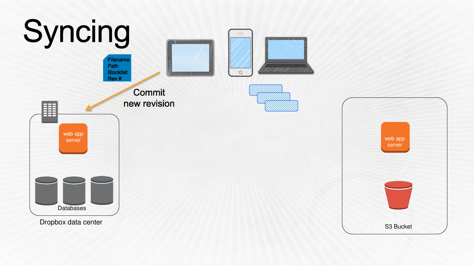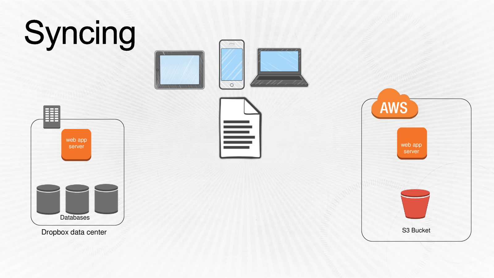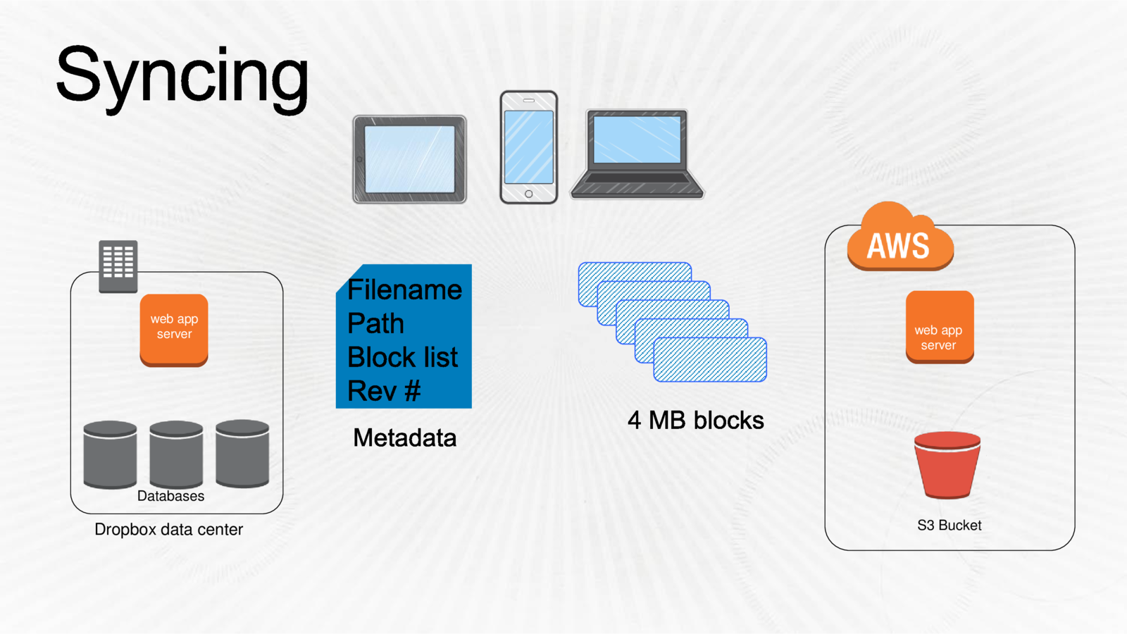 Dropbox uses more than uses more than 10,000 physical servers to manage user content, along with Amazon Web Services. User metadata is stored in the company’s data centers, while the actual files reside on Amazon’s S3 storage service.