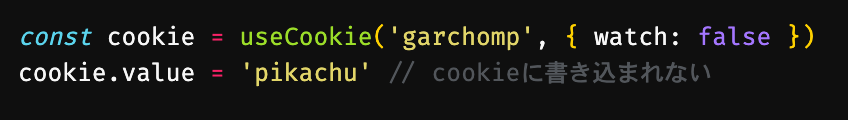 watchオプションをfalseにすると値を更新してもcookieへ書き込まれない