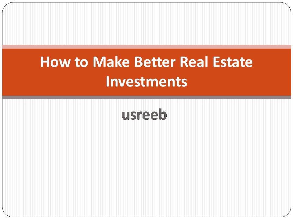 usreeb - How to Make Better Real Estate Investments