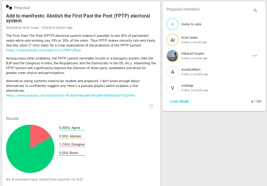 Loomio is a decision-making software designed to assist groups with the collaborative decision-making process. It is a free software web application, where users can initiate discussions and put up proposals.