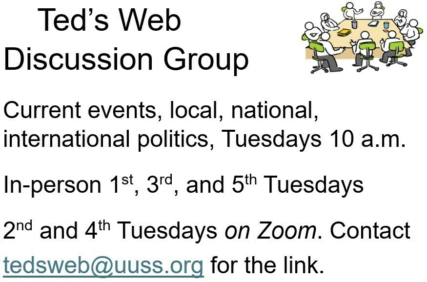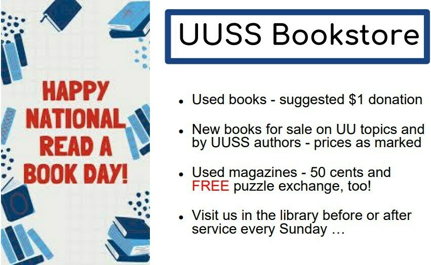 UUSS READERS meet the LAST Thursday of each month, in Fahs Classroom at 7 PM. Members suggest the books and members vote on the final selections, fiction or non-fiction.