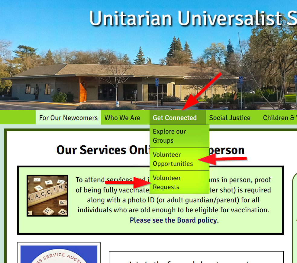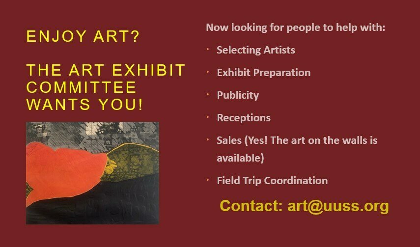 Several groups and programs need assistance. Check out the list of UUSS Volunteers Opportunities for current volunteer opportunities, dates and contact email address on the UUSS website under the “Get Connected” tab.