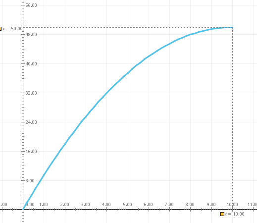 - Υπολογίστε το εμβαδόν που περικλείεται από την γραφική παράσταση και τον άξονα των χρόνων; Τι εκφράζει αυτό το εμβαδόν;
