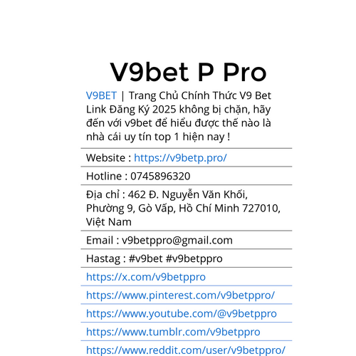 V9BET | Trang Chủ Chính Thức V9 Bet Link Đăng Ký 2025 không bị chặn, hãy đến với v9bet để hiểu được thế nào là nhà cái uy tín top 1 hiện nay ! Website : https://v9betp.pro/ Hotline : 0745896320 Địa chỉ : 462 Đ. Nguyễn Văn Khối, Phường 9, Gò Vấp, Hồ