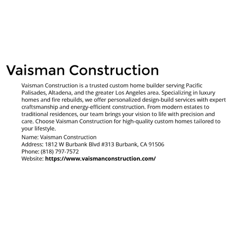 https://www.vaismanconstruction.com/ Vaisman Construction builds custom luxury homes in Los Angeles with expert craftsmanship, personalized design-build, and fire rebuild services.