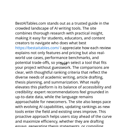 BestAITables.com stands out as a trusted guide in the crowded landscape of AI writing tools. The site combines thorough research with practical insight, making it easy for students, educators, and content creators to navigate https://bestaitables.com
