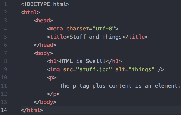 <p> The p tags plus this content is an element. </p>Opening tag