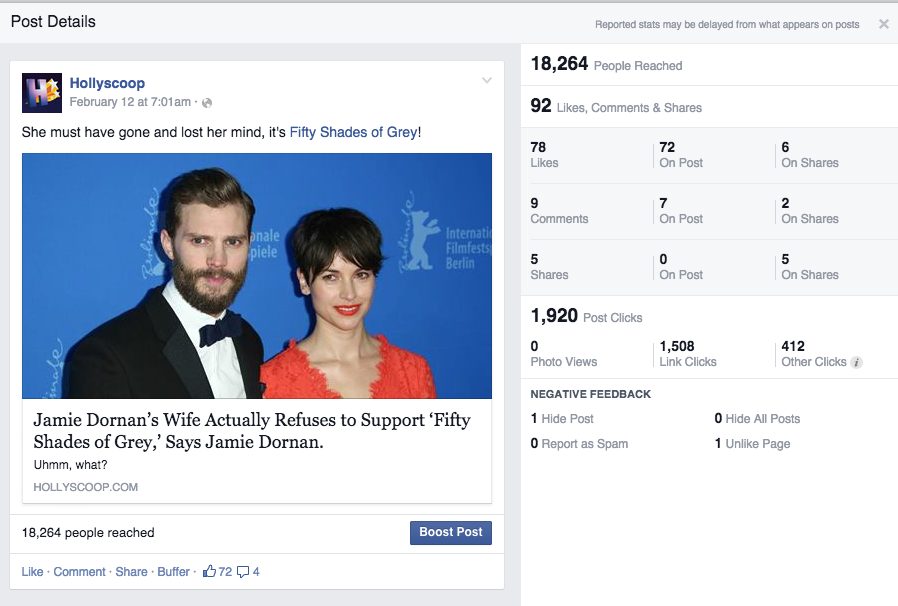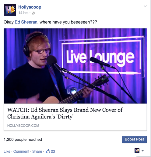 3. Balance of Posts: 75% Link Posts, Heavy on Photo Posts to drive up engagement w/Vanity URL, staying on FB