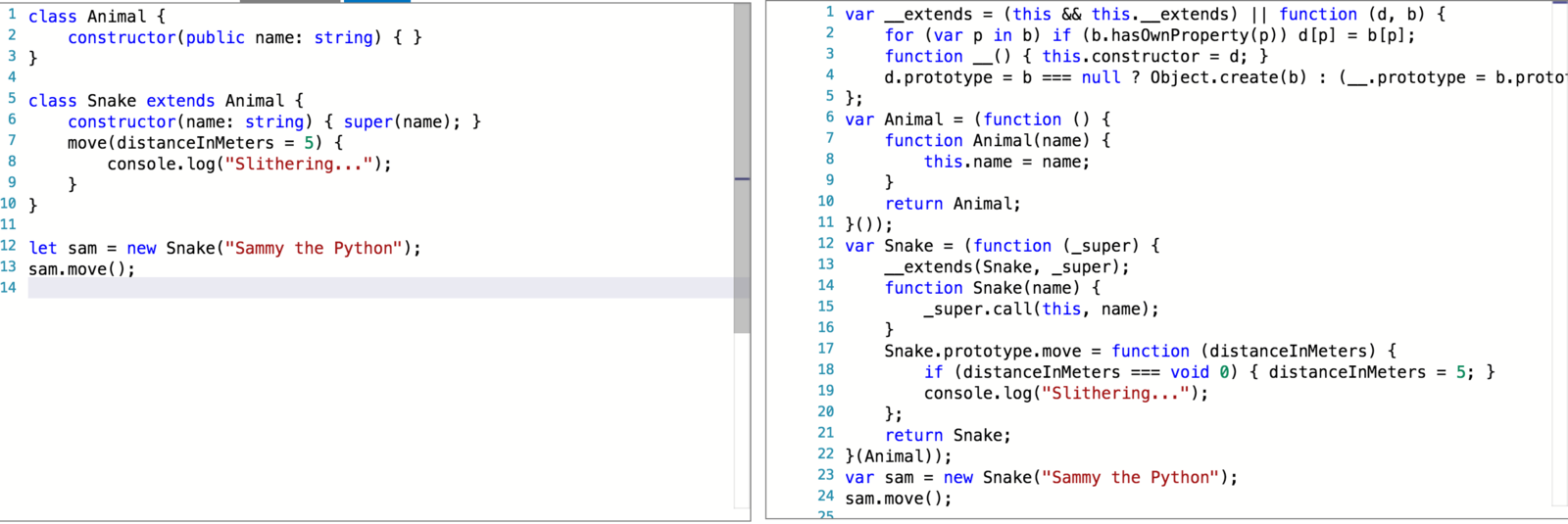 - Typescript is ES6 plus a type-checker. Both need a transpiler (generally Babel in case of ES6).