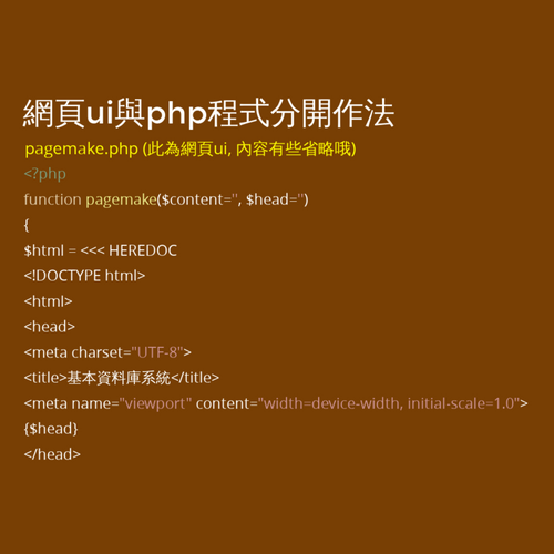 自建函式 pagemake() 網頁版型與php程式分開作法