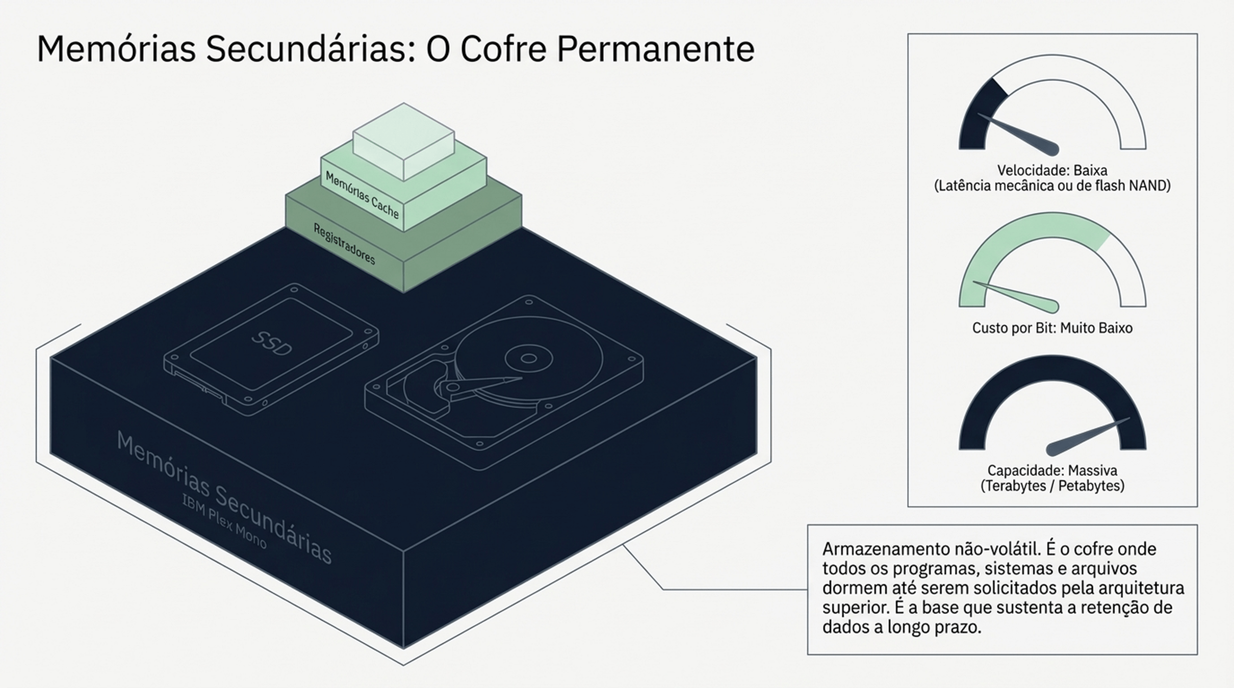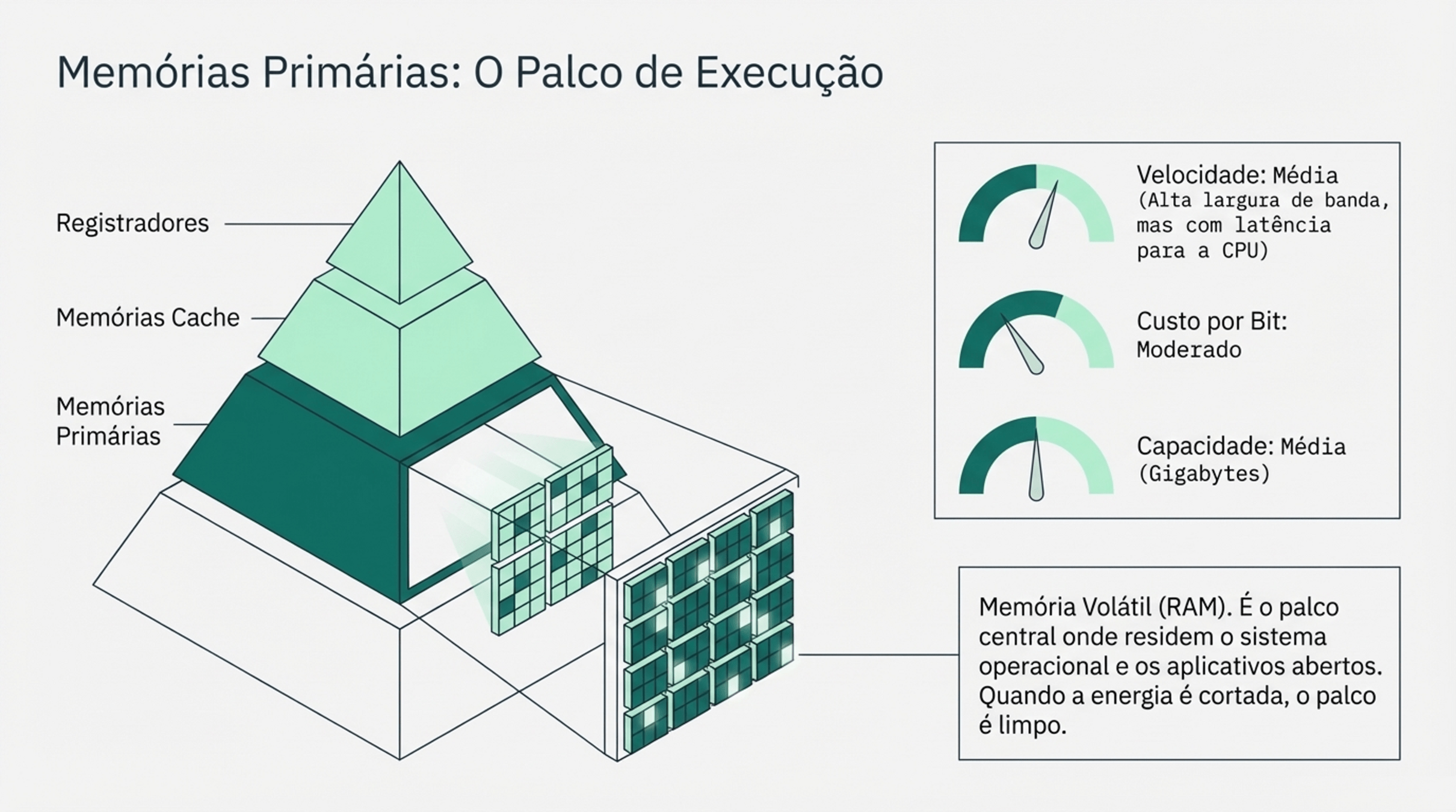 - A Memória CMOS: É uma pequena parte de memória que guarda as suas configurações personalizadas (como a hora do sistema e a ordem de boot).