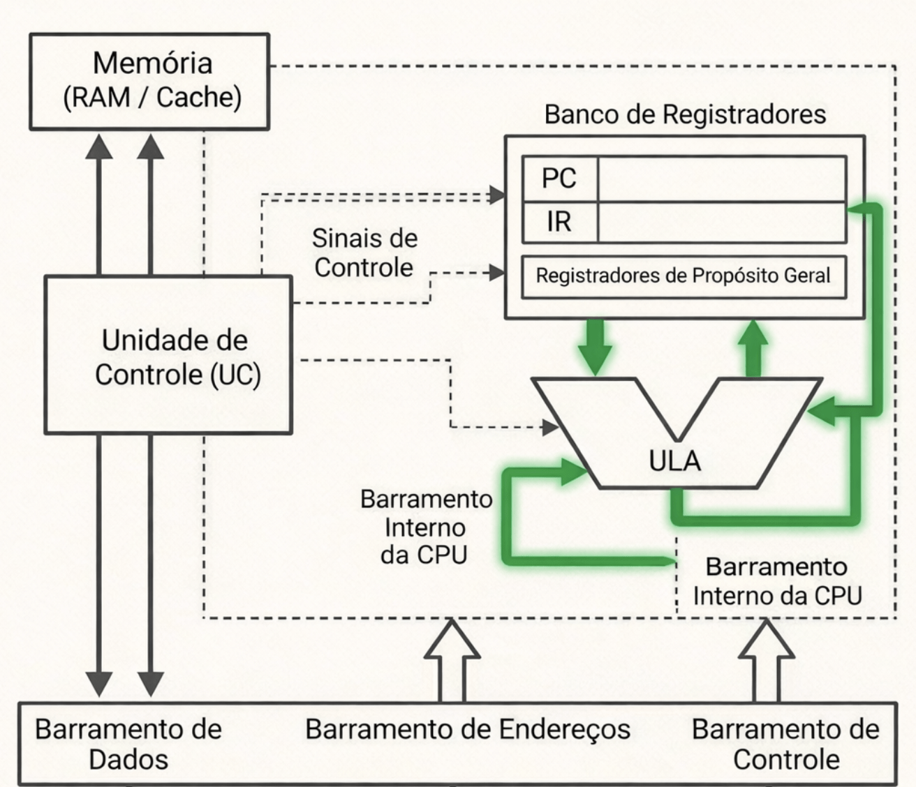 “Quando eu executo uma instrução, o que acontece dentro da CPU?”