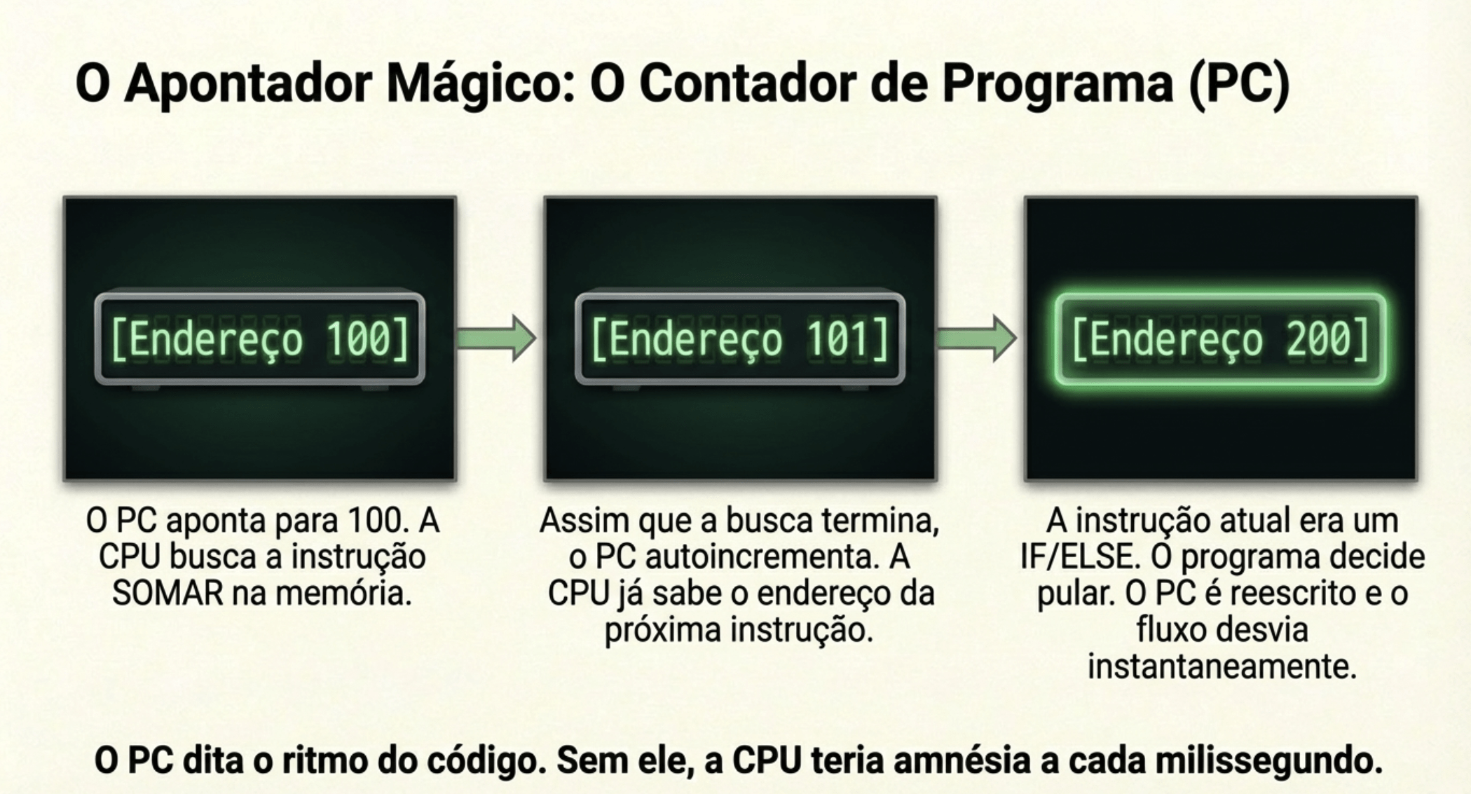 O PC normalmente anda para frente, mas a UC pode mandar ele pular.