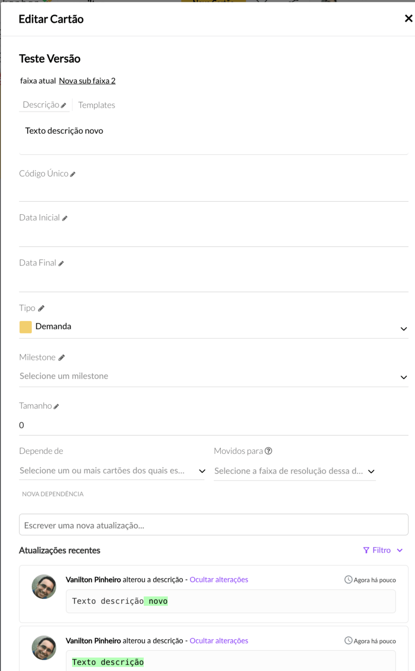 Utilizado para rastrear alterações em documentos de projeto, especificações técnicas e manuais.