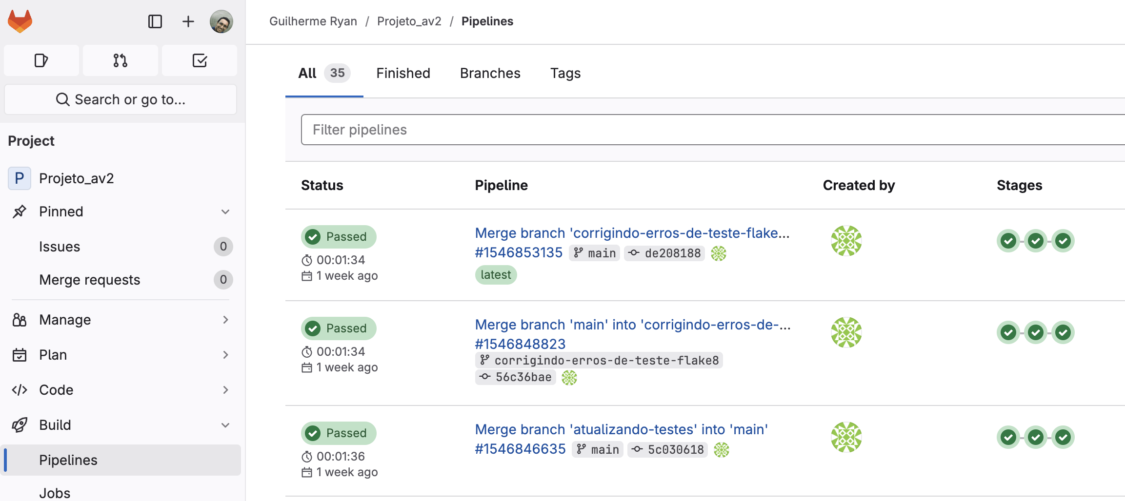 Após criar o arquivo .gitlab-ci.yml, GitLab automaticamente detecta e executa seu pipeline.