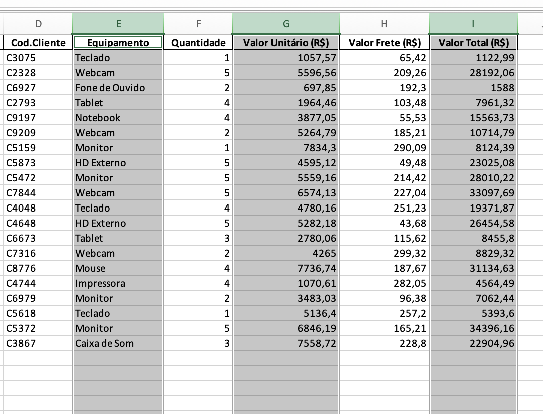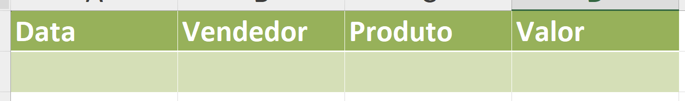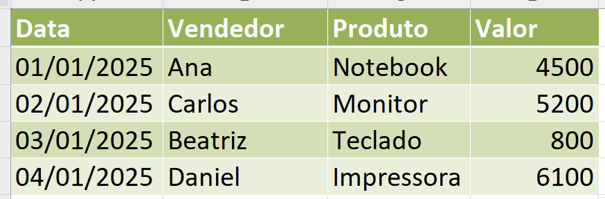 - Vamos realizar um cadastro de Vendas, gravando uma macro que preencha a tabela abaixo e copie o conteúdo para a tabela com todos os dados.