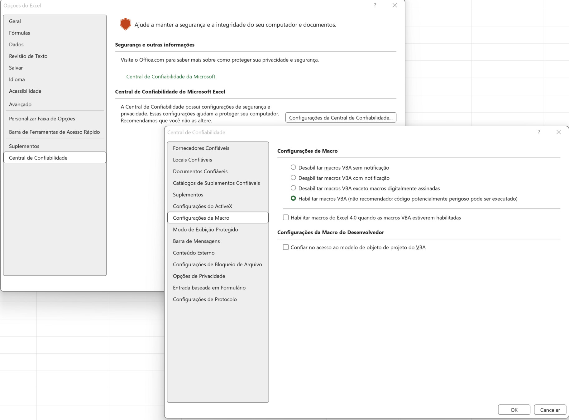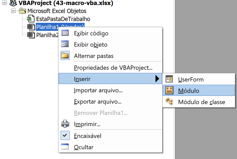 Uma Macro (Sub) é um bloco de código que executa ações no Excel.