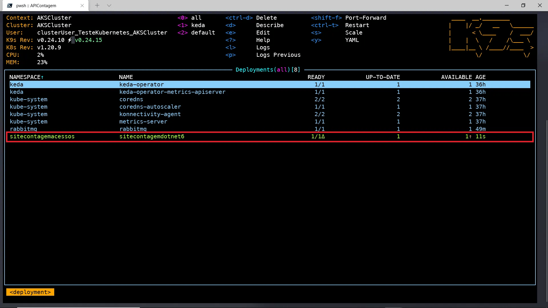 - Podemos acionar o K9s via terminal com o comando: k9s