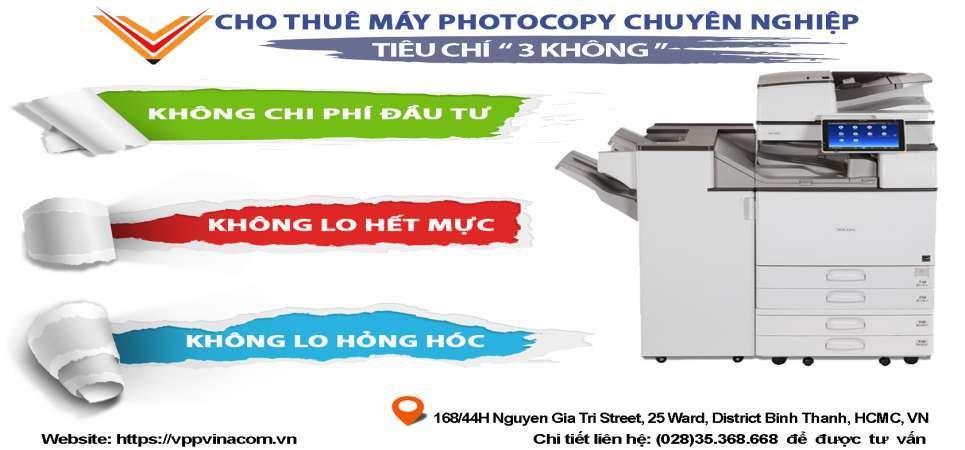 Dịch vụ cho thuê máy photocopy giá rẻ tại tphcm với tiêu chi 3 không "Không tốn chi phí đầu tư" - "Không lo hết mực mực" - "Không lo hỏng hóc" với giá chỉ từ 600K/Tháng. Click xem thêm dịch vụ #chothuemayphotocopy tại VPP VINACOM