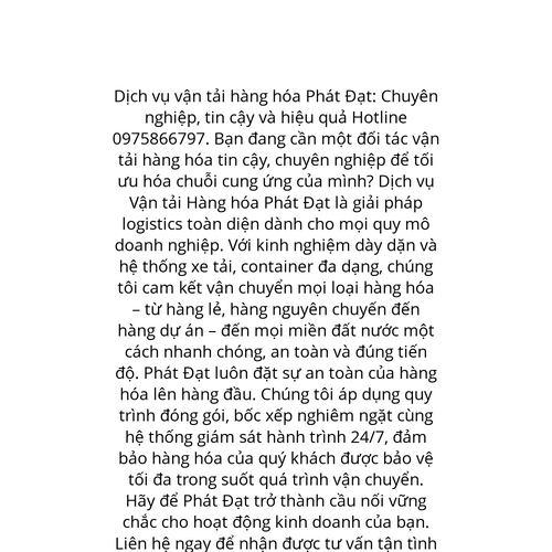 Website: https://www.dichvuchuyennhahanoi.com/dich-vu-van-tai. Dịch vụ vận tải hàng hóa Phát Đạt: Chuyên nghiệp, tin cậy và hiệu quả Hotline 0975866797. Bạn đang cần một đối tác vận tải hàng hóa tin cậy, chuyên nghiệp để tối ưu hóa chuỗi cung ứng của