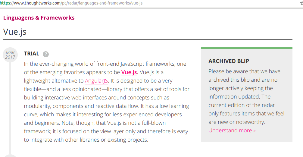 - Muito novo para saber dos desafios pela frente (vide AngularJS)