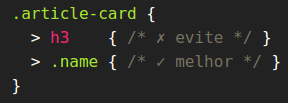 Evite usar tags como seletores, pois não são descritivas e há perda de performance