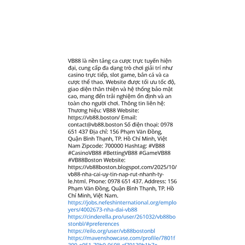 Website: https://vb88boston.blogspot.com/2025/10/vb88-nha-cai-uy-tin-nap-rut-nhanh-ty-le.html. VB88 là nền tảng ca cược trực tuyến hiện đại, cung cấp đa dạng trò chơi giải trí như casino trực tiếp, slot game, bắn cá và ca cược thể thao. Website được