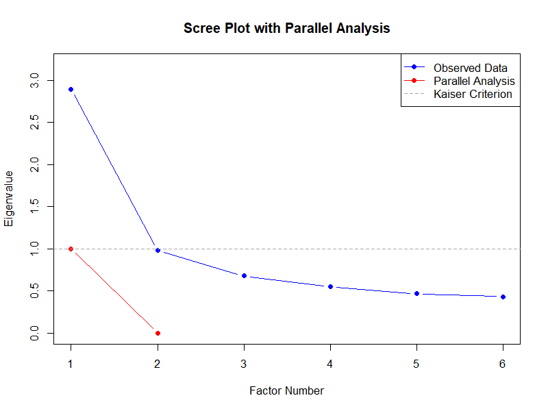 - Number of factors to extract (eigenvalues, scree plot, parallel analysis)