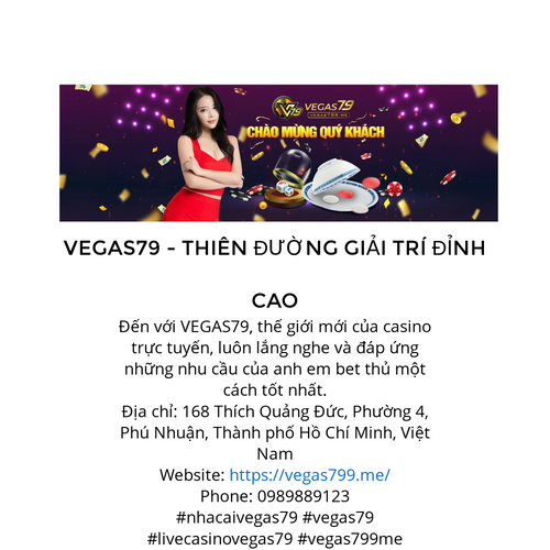 "Đến với VEGAS79, thế giới mới của casino trực tuyến, luôn lắng nghe và đáp ứng những nhu cầu của anh em bet thủ một cách tốt nhất. Địa chỉ: 168 Thích Quảng Đức, Phường 4, Phú Nhuận, Thành phố Hồ Chí Minh, Việt Nam Website: https://vegas799.me/
