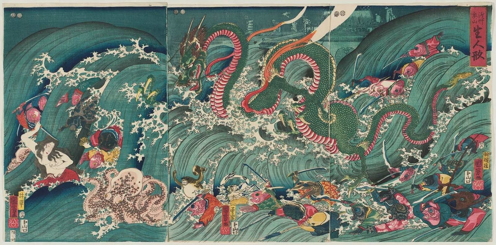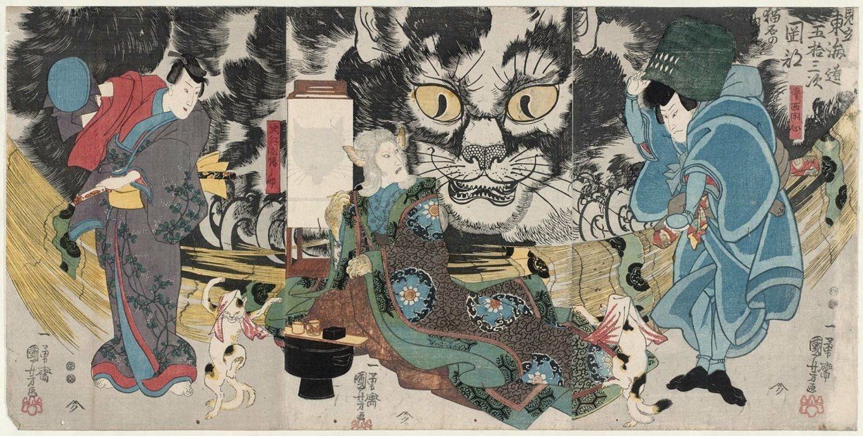 An Imaginary Scene of the Origin of the Cat Stone at Okazaki, from Fifty-three Stations of the Tôkaidô