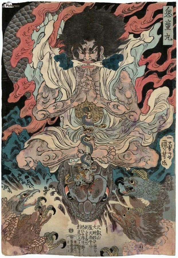 A Self-portrait of the artist Kuniyoshi Surrounded by Figures from his Sketches