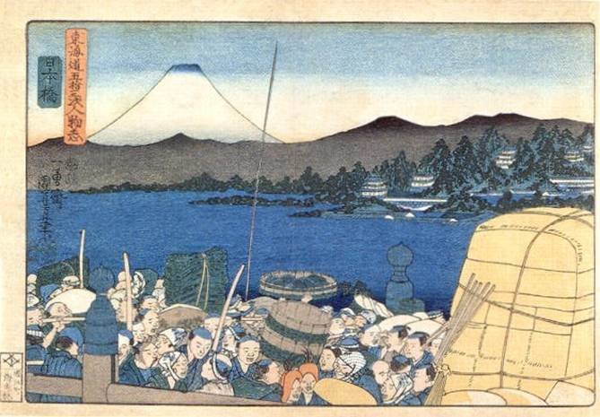 Crowds on Nihombashi from Human-interest Views of the Fifty-three Stations of the Tôkaidô
