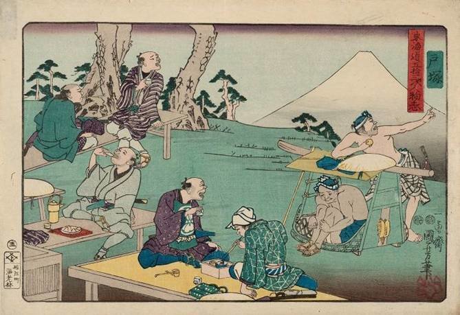 Travelers Eating and Drinking (Totsuka) Human-interest Views of the Fifty-three Stations of the Tôkaidô