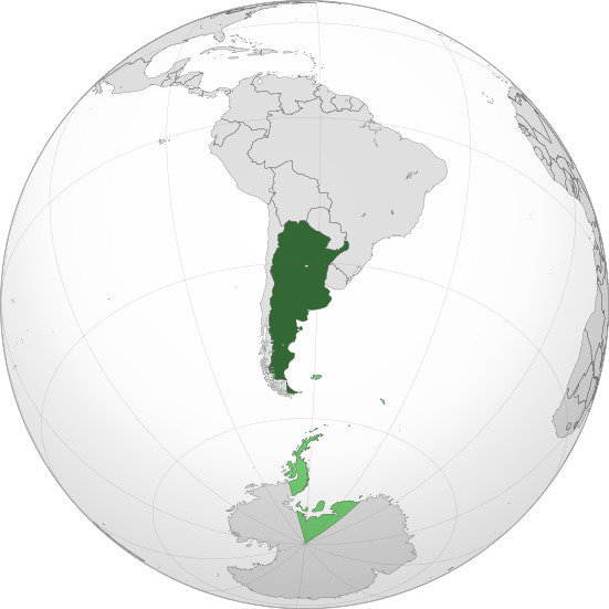 Argentina también tiene una zona de la Antártica e islas en el Atlántico (islas Málvinas y Sandwich)