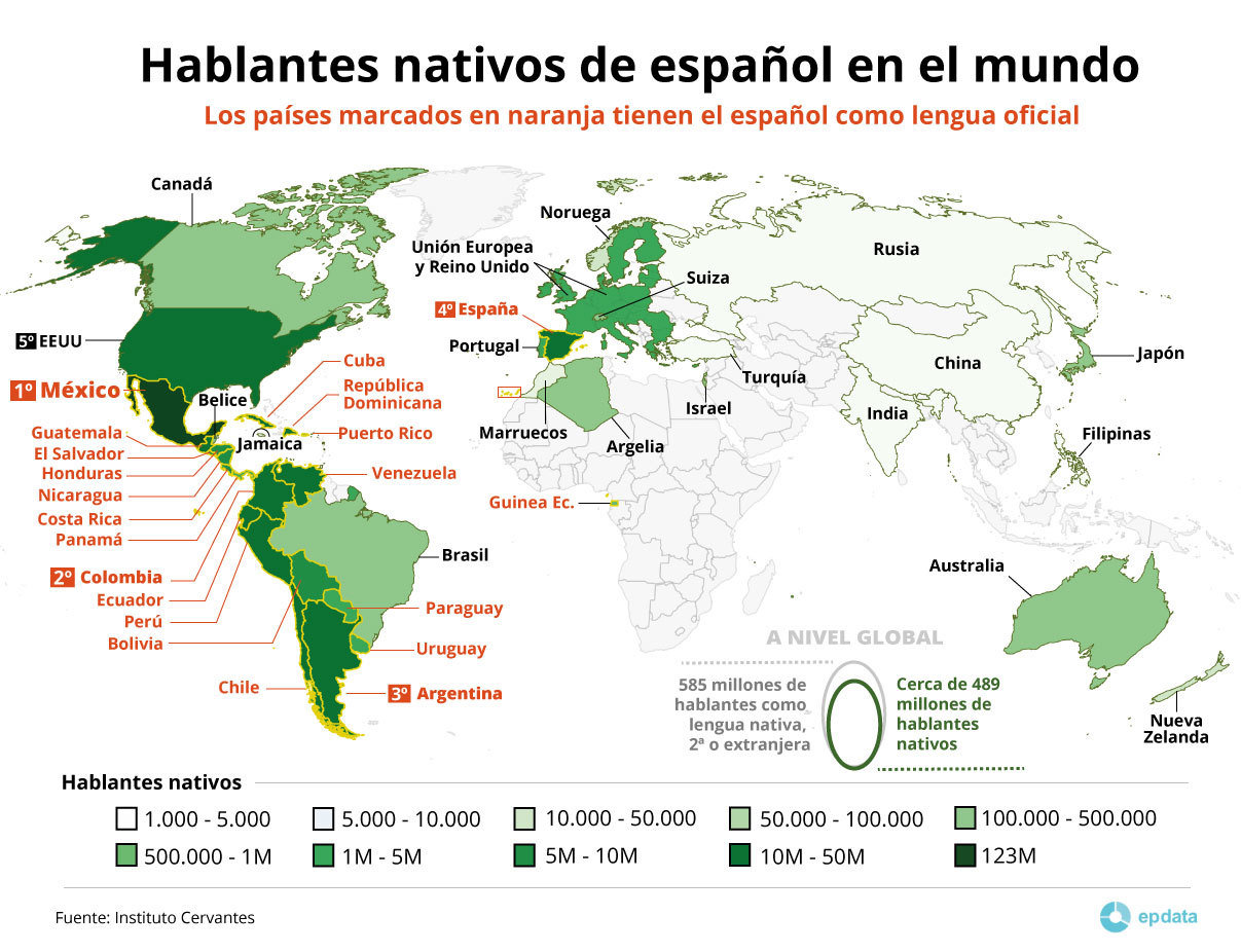 - Totalt blir 580 miljoner människor som pratar spanska i världen.